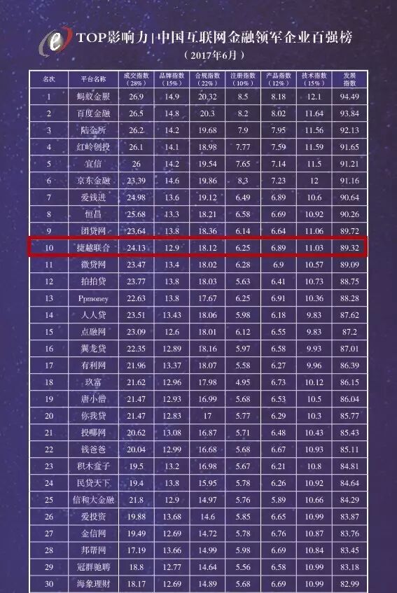 7月20日,中国工业与信息化部下属的中国电子商务协会金融科技研究院和中国电子商务协会互联网金融研究院联合发布“中国互联网金融领军企业百强榜”,北京乐鱼web版登录入口信息咨询有限公司凭借强劲的综合实力,同蚂蚁金服、百度金融、陆金所等企业一起跻身前十强。