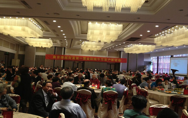粽香飘飘端午情,捷越财富送惊喜。在端午佳节到来之际,为答谢广大新老客户对捷越南京财富中心的肯定与支持,捷越财富南京第一营业部于5月18日在南京国际金融中心六楼丁香御品酒店组织了首场端午茶话交流答谢会,共有260位客户嘉宾参加本次活动。